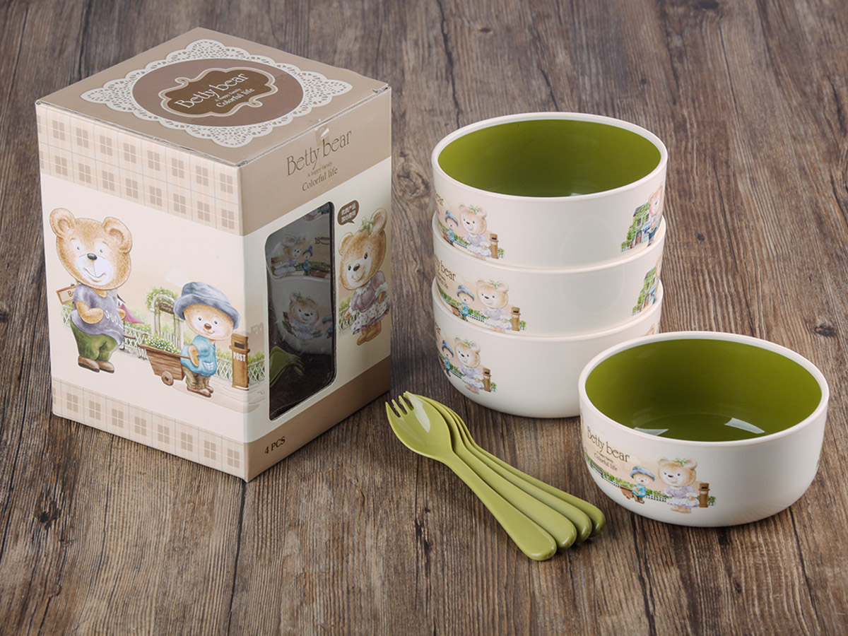 得力熊大號韓式雙色餐碗(4PCS)