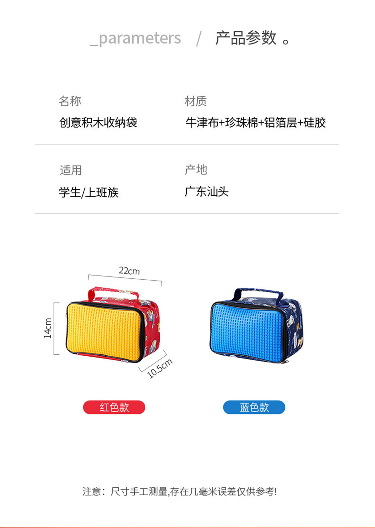 Stuff:牛津布+珍珠棉+鋁箔層+硅膠
