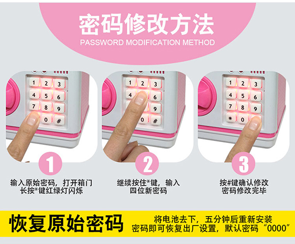 粉紅豬自動卷錢ATM密碼箱存錢罐