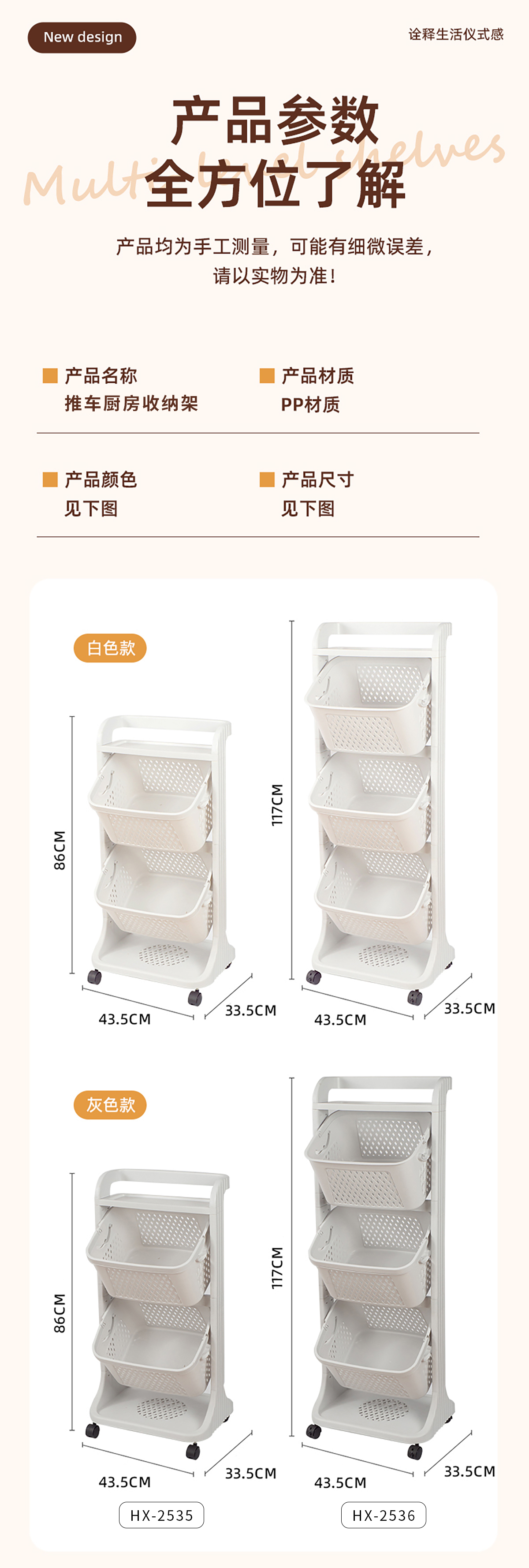 Size: HX-2535(二層):435*335*860mm HX-2536(三層):435*335*1170mm
