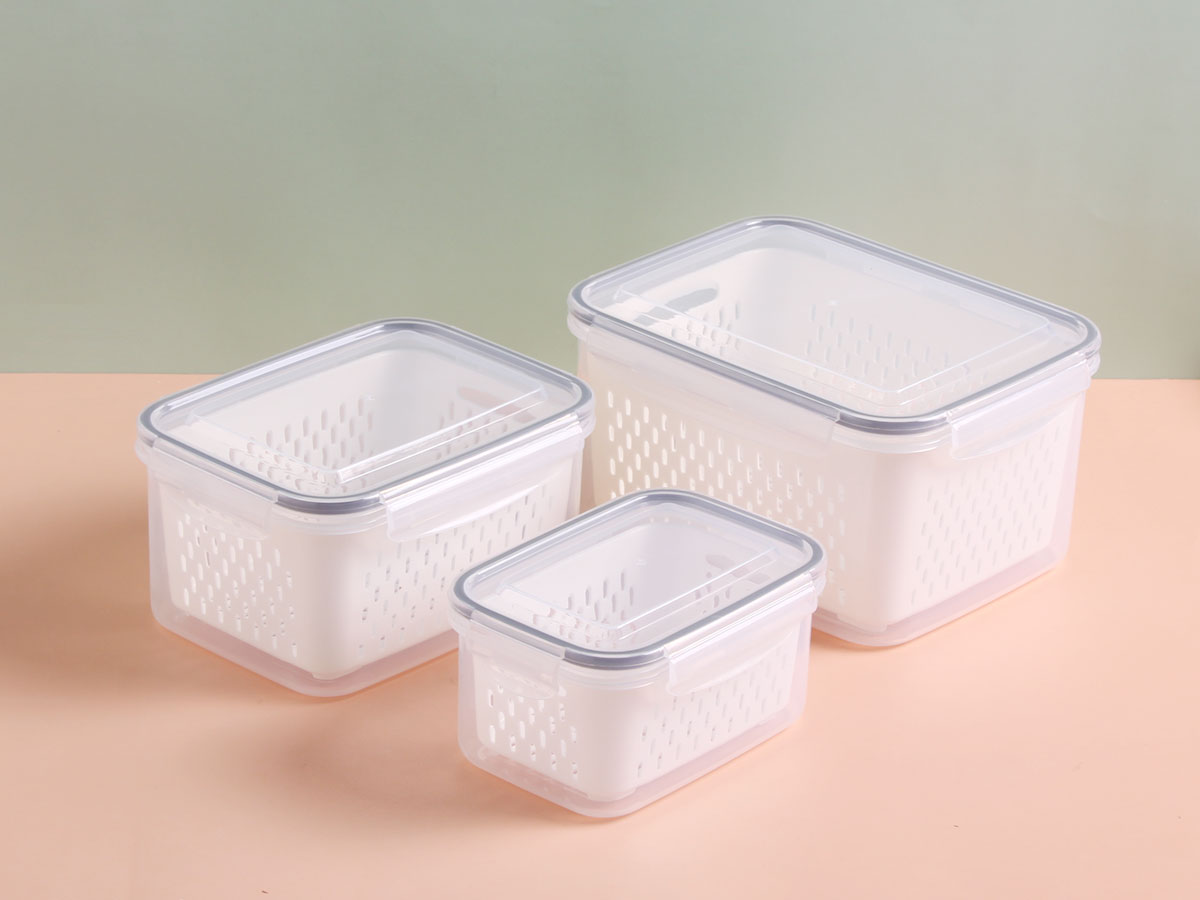 三件套密封瀝水保鮮盒(長方形)