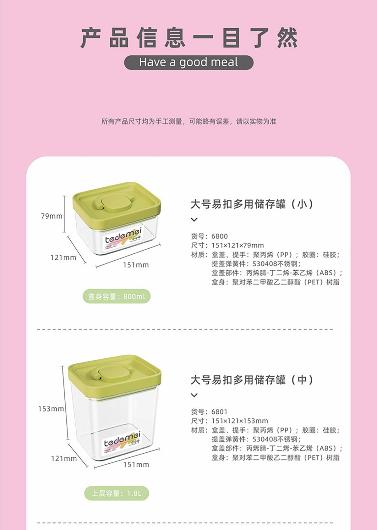 Size: HM-6800(小號800ml):151*121*79mm