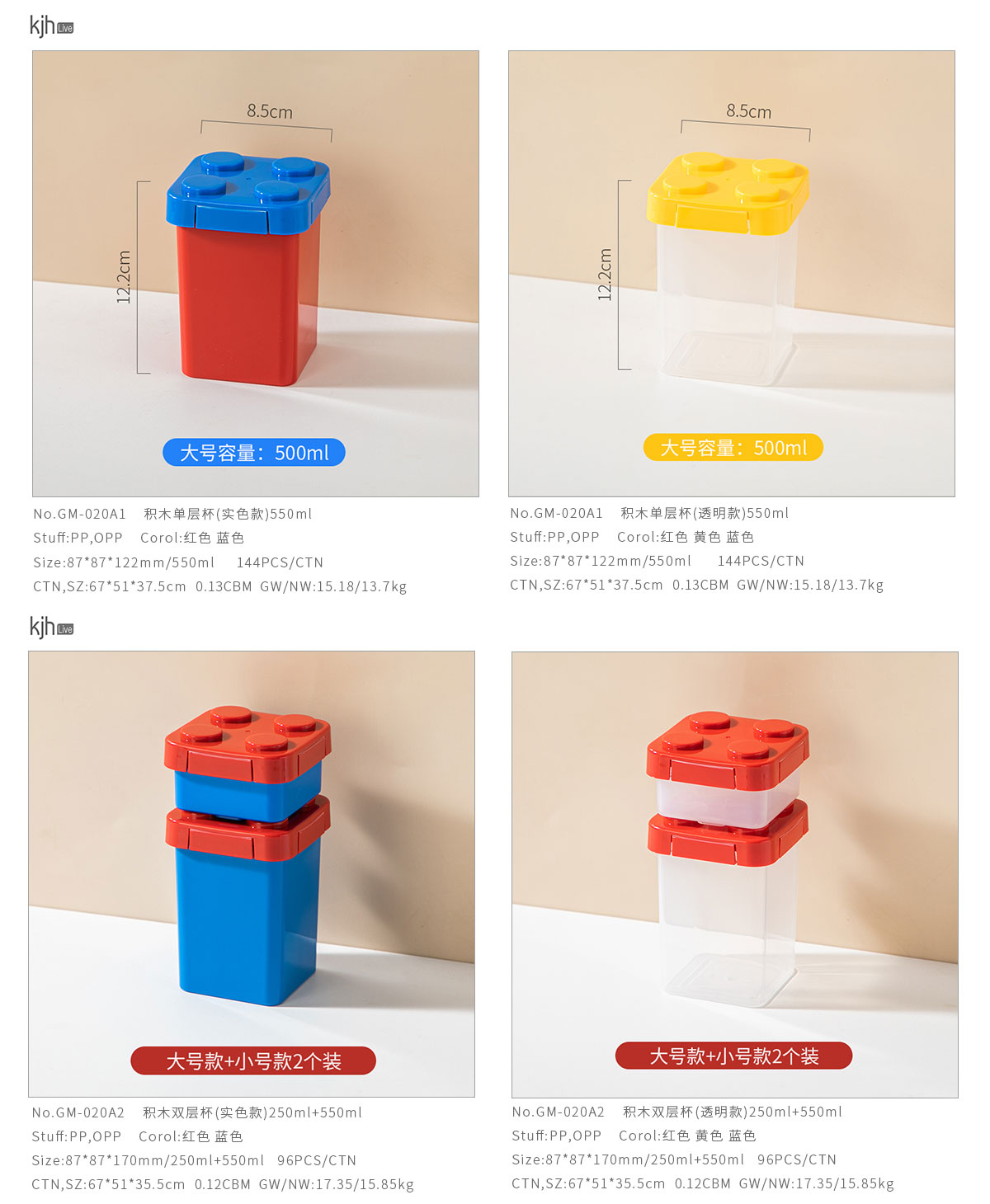 積木單層500ml/雙層250ml+500ml杯(實色款)