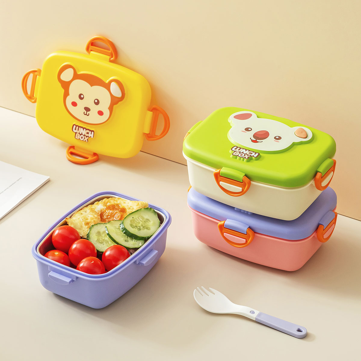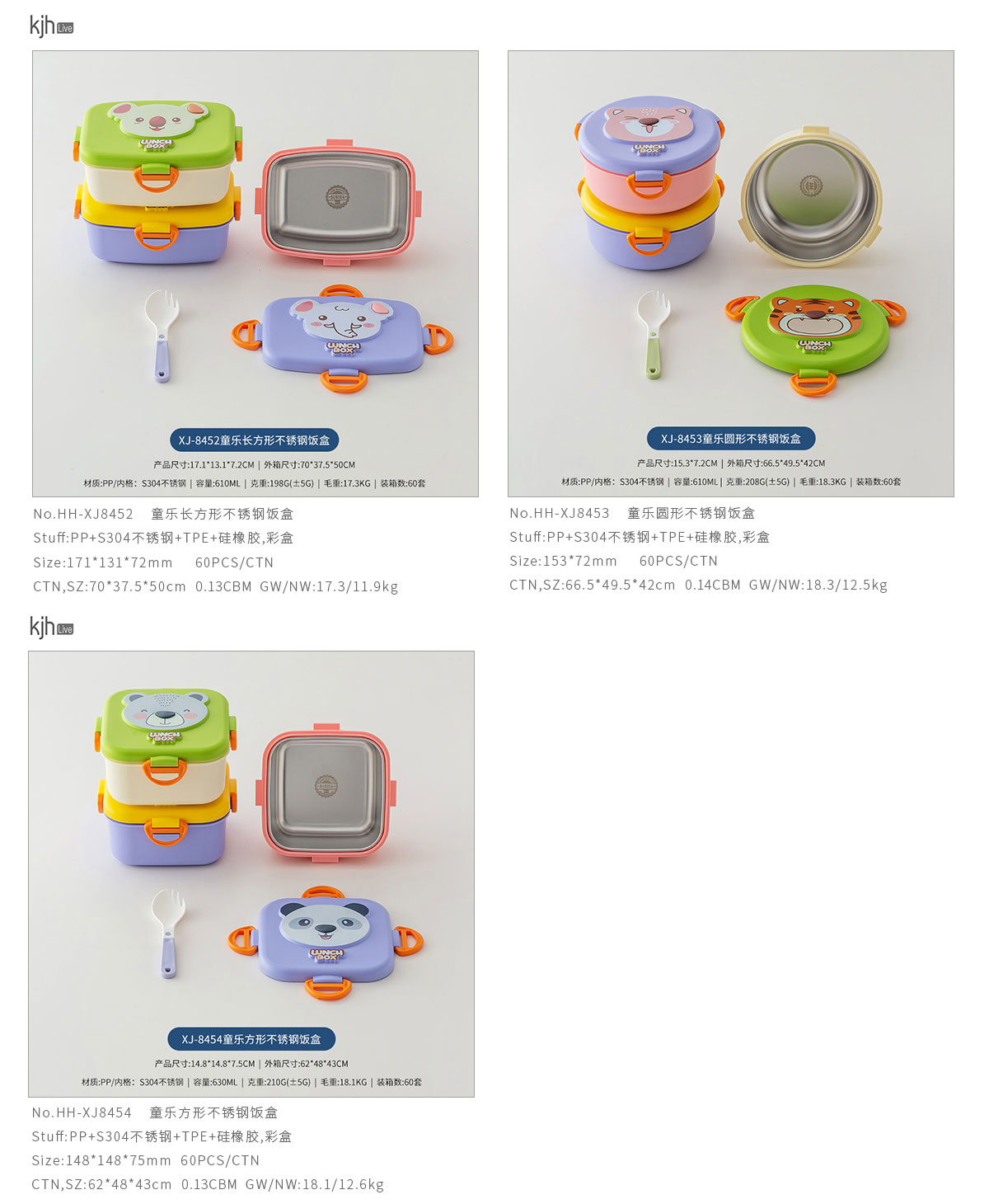 童樂長方形/圓形/方形不銹鋼飯盒