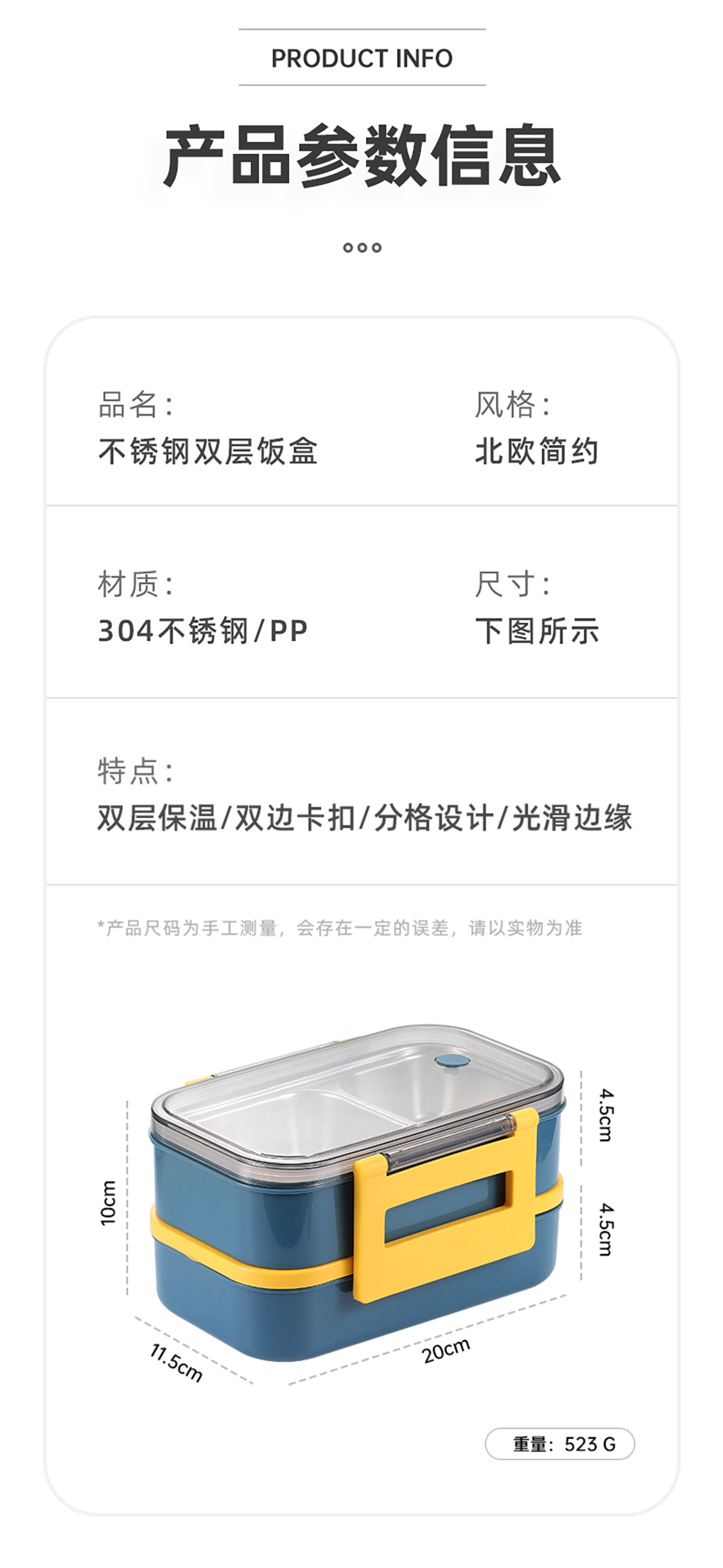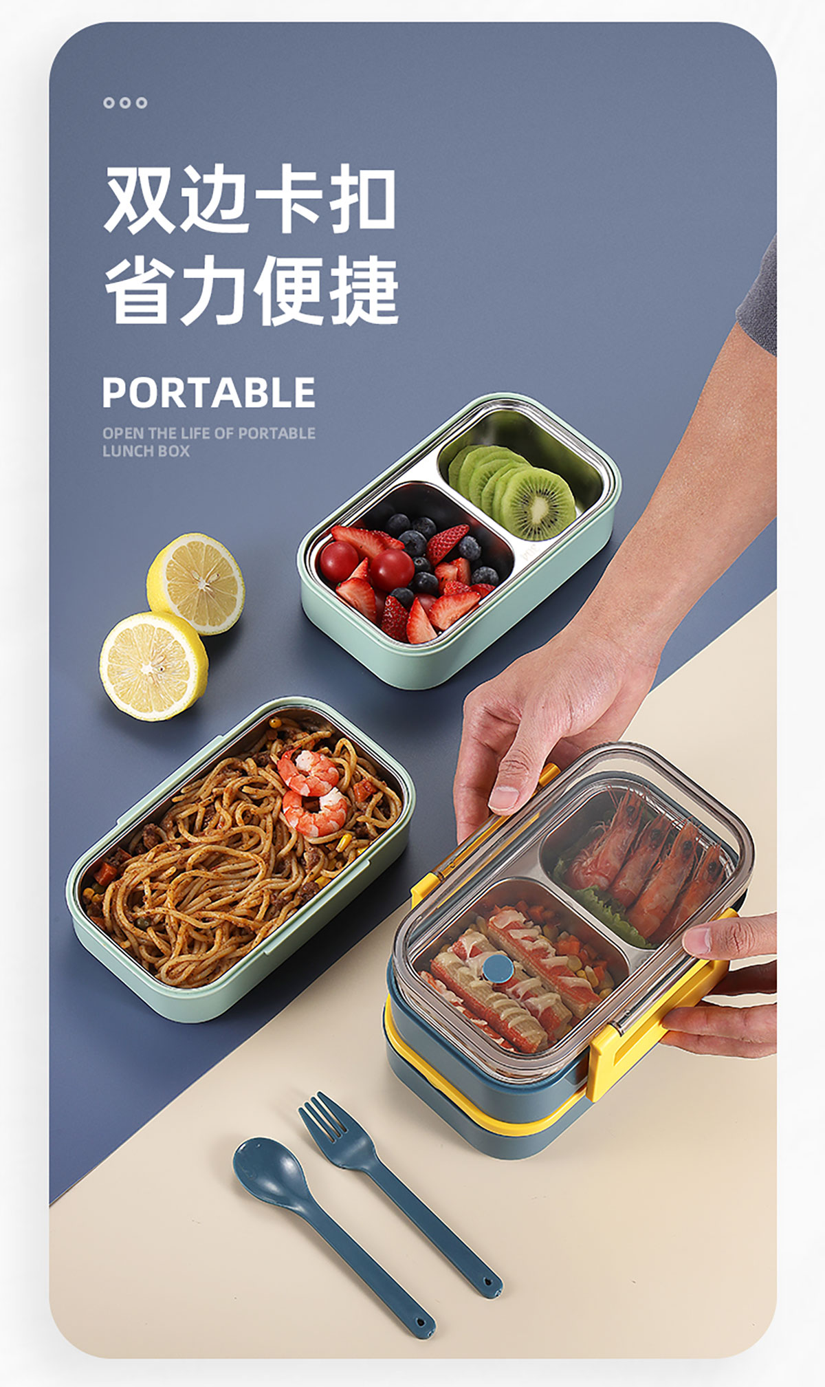 莫蘭迪雙層分格不銹鋼飯盒1000ml
