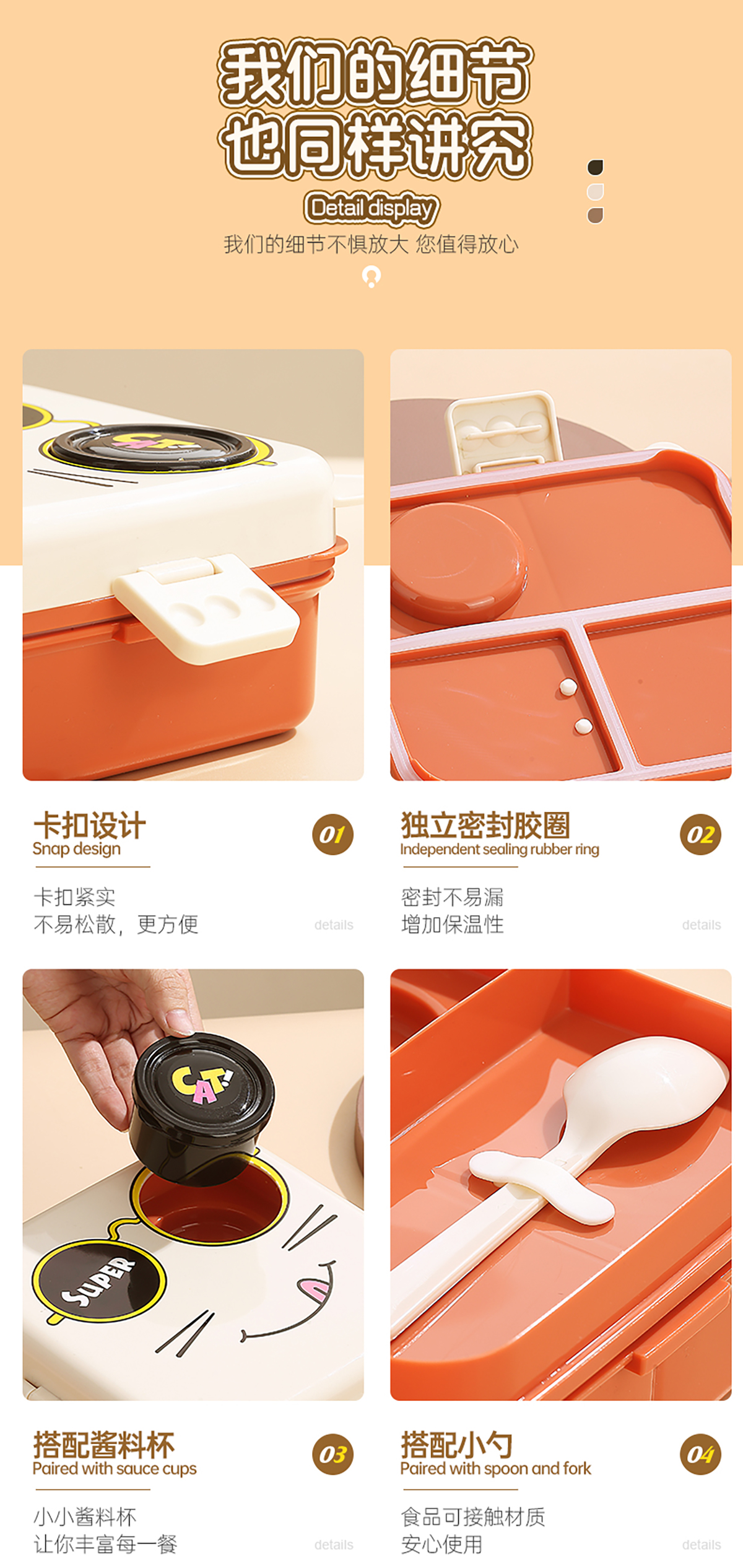 小貓正方形飯盒(塑料)1590ml+70ml