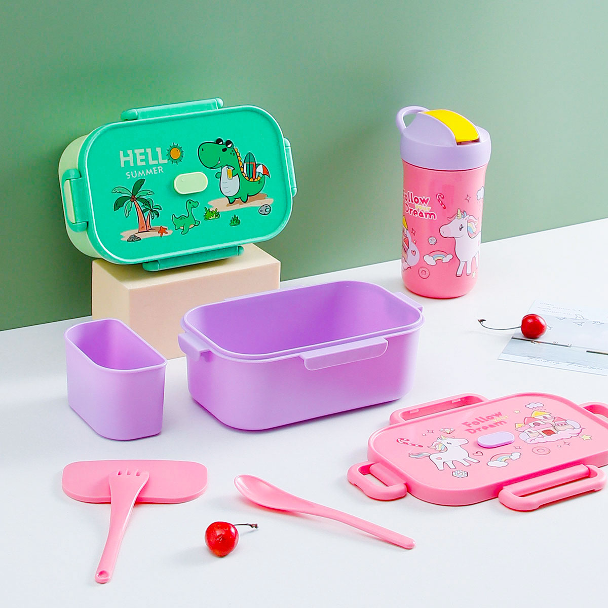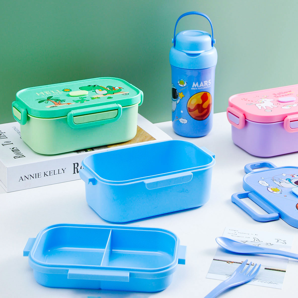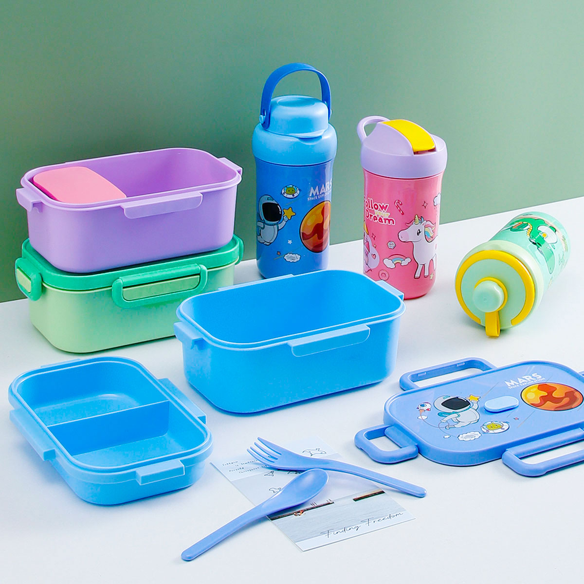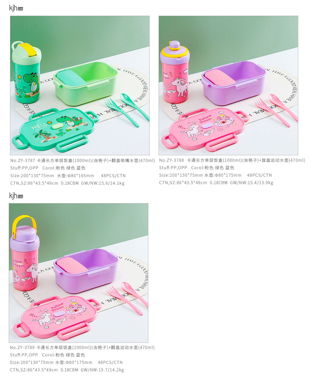 卡通長方單層(含格子)/雙層飯盒+翻蓋吸嘴/旋蓋運動/翻蓋運動水壺