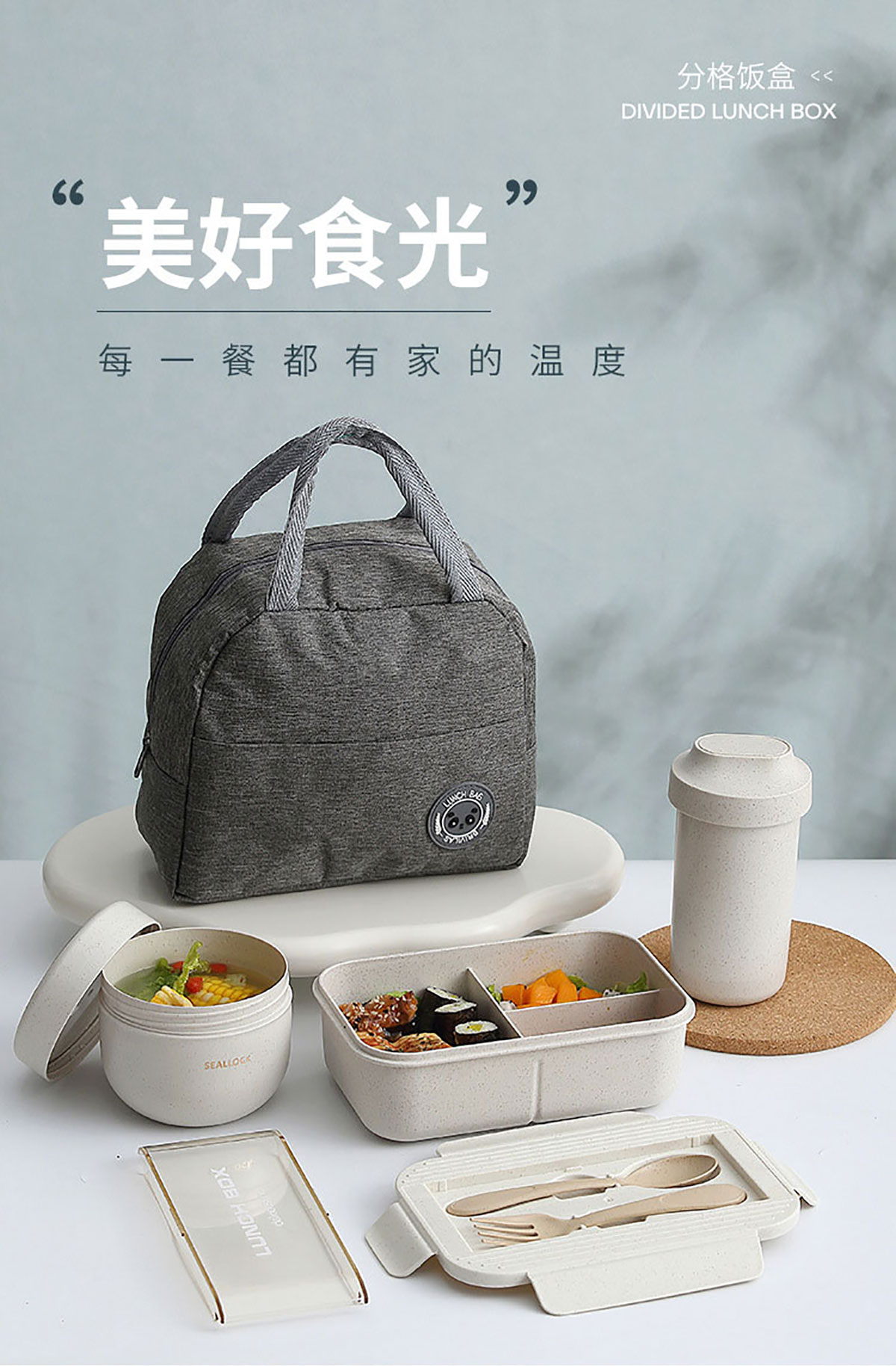 簡麥便當(dāng)盒飯盒/套裝(飯盒+水杯/飯盒+水杯+灰色餐袋/飯盒+燕麥杯+灰色餐袋)