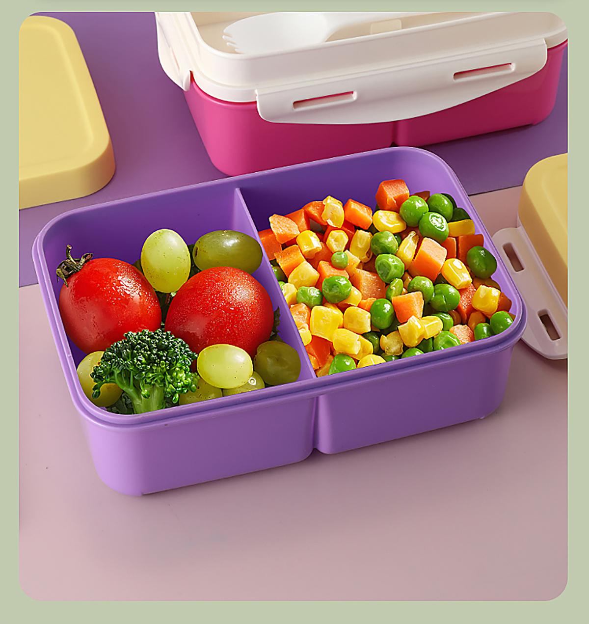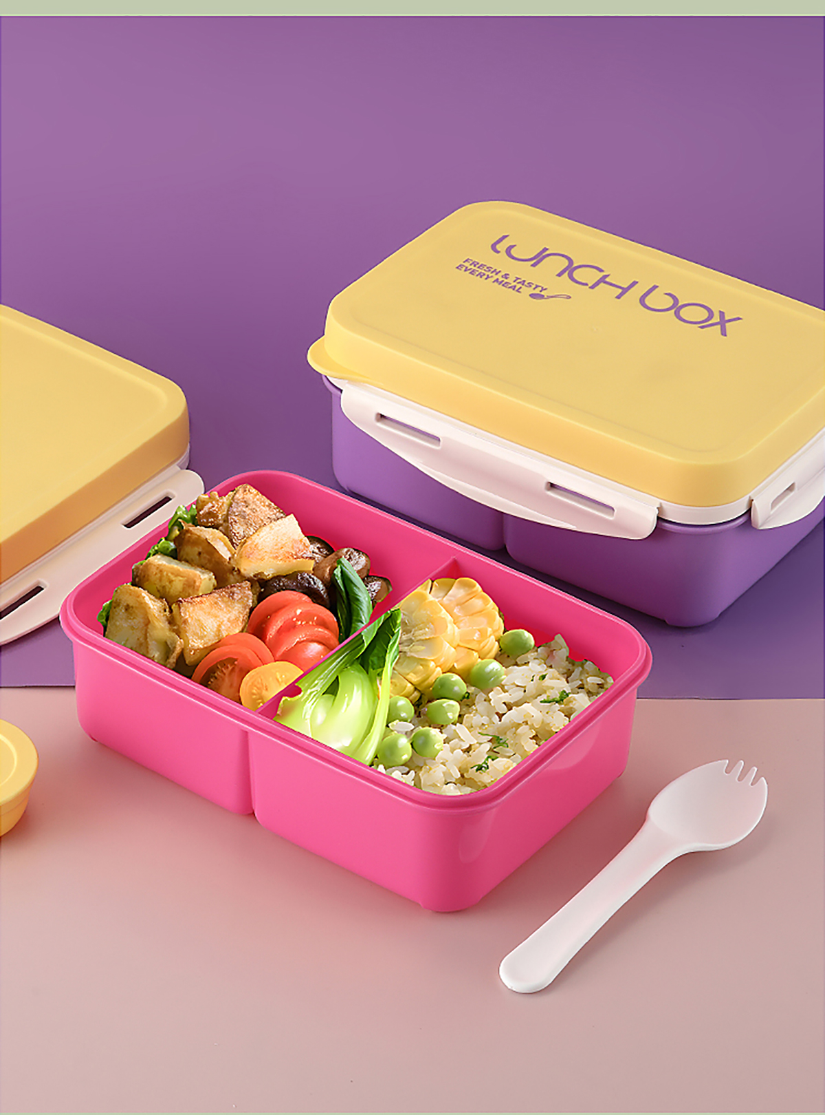 Size: 飯盒:210*150*83mm/1000ml 醬料盒:58*25mm/35ml 叉子:38*42mm