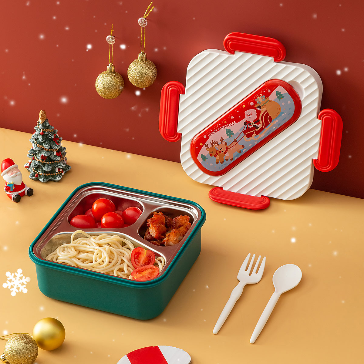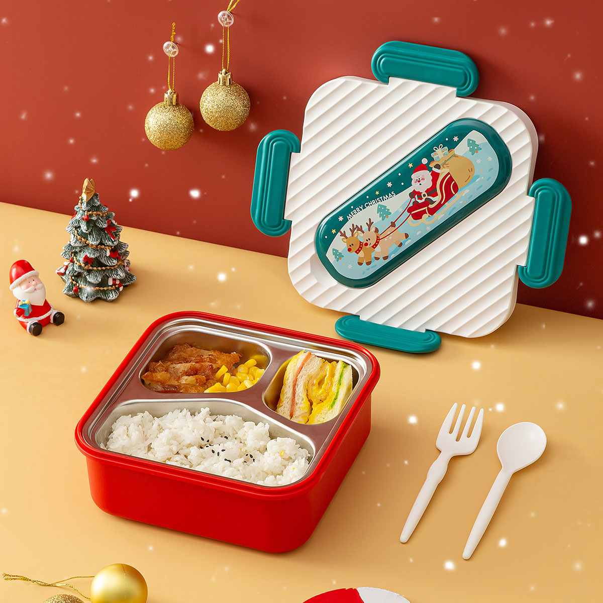 圣誕方形不銹鋼飯盒