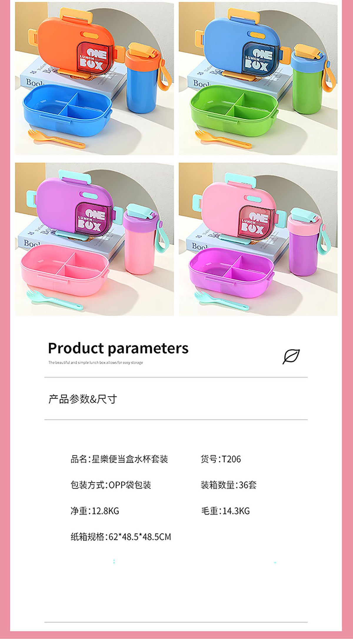 SWY-T206(水杯套裝):飯盒:215*149*71mm/1000ml 水壺:直徑82*高161mm/480ml