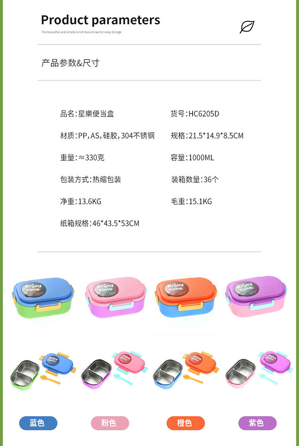 SWY-T204(套裝款):飯盒:215*149*72mm/1000ml 水壺:直徑82*高161mm/480ml
